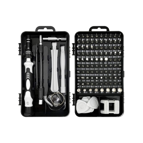 BigStren HandyTech elektronikai javító - szétszedő szerszámkészletAz BigStren HandyTech 110 eszközből álló elektronikai javító és szétszedő szerszámkészlet praktikus társ lehet a mindennapokban, segítségével bármikor, bárhogyan megszerelhetővé válnak az elektronikai eszközök.A készlet alkalmazható mobiltelefonok, táblagépek, órák, illetve olyan elektronikai cikkek szervizelésére, amelyek nem szabványos csavarokkal vannak felszerelve. A termék króm-vanádium