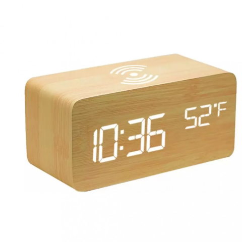 1 kép xPRO Digitális ébresztőóra vezeték nélküli QI töltővel bambusz 5W