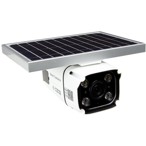 IP kamera - kültéri, napelemes, max. videófelbontás 1920 × 1080 px, hibrid éjjellátás 15 m maximális hatótávval, 120° betekintési szög, fix objektív, mozgás és személy(ek) érzékelése, beépített mikrofon, beépített hangszóró és kétirányú hang, értesítés mobilra, SD tárhely, GSM csatlakozás, tápellátása napelemes, kommunikáció Tuya segítségével, IP65 lefedettségi fok, napelem, tartó és szerelési anyag a csomag része, méretei 9,2 × 8,2 × 19,2 cm (