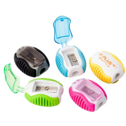 Y-Plus+ Shuttle hagyományos, 1 lyukú, műanyag, tartályos ceruzahegyező. Gumírozott oldalának és kialakításának köszönhetően fogása kényelmes, lecsukható fedővel rendelkezik. Minden szabványos ceruzával használható. Gyorsan és hatékonyan hegyez. Vegyes sz