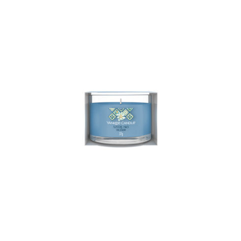 Gyertya - minta, mindennapi használatra való, gyümölcsös illat,, üvegedény, kerek alakú, anyaga szójaviasz, kék kivitel, égési idő 10 óra YANKEE CANDLE Azure Sky 37 g gyertyák fontosabb paraméterei A fogadalmi YANKEE CANDLE gyertyák nagyszerűen alkalmasak egy új illat letesztelésére Üvegtégelyben vásárolhatod meg, amely ízléses díszítő