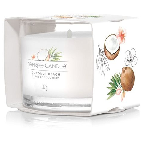 Gyertya - illatos, mindennapi használatra való, gyümölcsös illat,, üvegedény, fehér kivitel YANKEE CANDLE Coconut Beach Sampler 37 g fő tulajdonságai Az illatos YANKEE CANDLE gyertya kellemes atmoszférát teremt Üvegtégelyben szerezhető be, amely kellemes hangulatot varázsol minden otthonba K