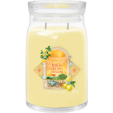 Gyertya - illatos, mindennapi használatra való, gyümölcsös illat, 2 kanóccal, üvegedény, kerek alakú, anyaga szójaviasz és paraffin, sárga kivitel, égési idő 90 óra YANKEE CANDLE Lemon Gelato 567g kulcsfontosságú jellemzői Az illatos YANKEE CANDLE gyertya kellemes atmoszférát varázsol Üvegtégelyben vásárolhatod meg, amely ízléses díszítő elemként is funkcionál Na