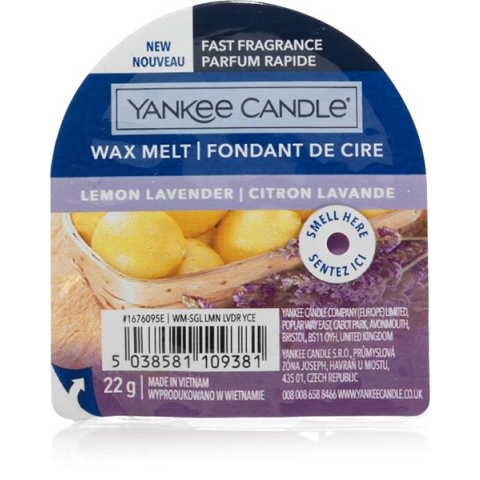 Illatviasz - üde illat, anyaga paraffin, tömege 22 g A YANKEE CANDLE Lemon Lavender illatviasz rendkívúl gyorsan képes az egész lakásodat illatosítani. Szilárd állapotban kis helyiségekben is használható, és hetekig élvezheted a friss illatát. A maximál