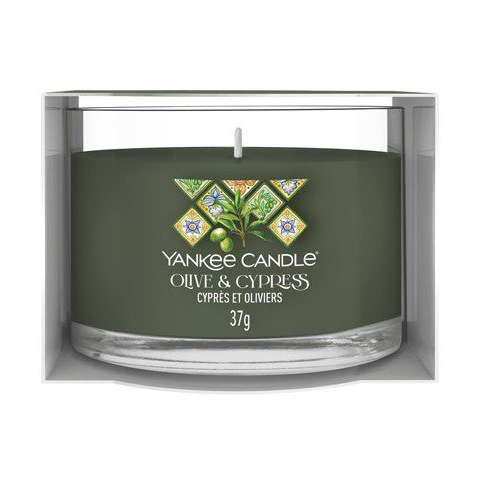 Gyertya - minta, mindennapi használatra való, fűszeres és édes illat,, üvegedény, kerek alakú, ajándékcsomagolásban, anyaga szójaviasz, zöld kivitel, égési idő 10 óra YANKEE CANDLE Olive and Cypress 37g gyertyák legfontosabb paraméterei A fogadalmi YANKEE CANDLE gyertyák ideálisak egy új illat kipróbálására Üvegtégelyben vásárolhatod meg, amely ízléses díszítő elem