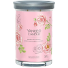 Gyertya - illatos, virágos illat, 2 kanóccal, üvegedény, kerek alakú, anyaga paraffin, rózsaszín kivitel, égési idő 100 óra A Yankee Candle Signature egy nagyméretű gyertya két kanóccal és 60-100 órás égési idővel. A szójaviasz és a legfinomabb illatanyag-összetevők sima keverékéből készül. A két kanóc gyorsabb viaszolvadá