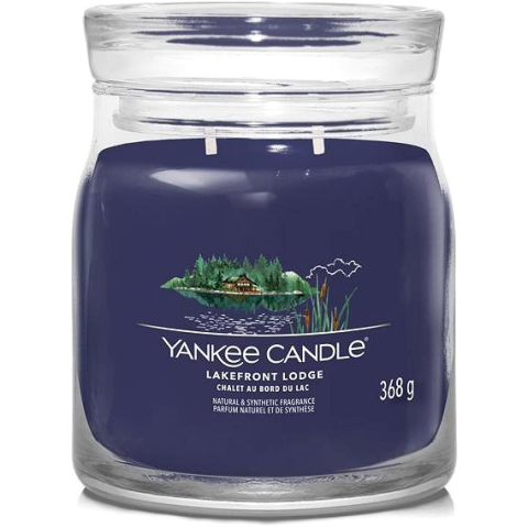 Gyertya - illatos, fás illat, üvegedény, kerek alakú, anyaga paraffin, kék kivitel, égési idő 50 óra A YANKEE CANDLE Signature Lakefront Lodge gyertya fás illata egy békés erdei vagy tóparti hétvégi házba visz el. A Lakefront Lodge illat a fenyők, a cédrus és a friss hegyi levegő jegyeit ötvözi. Vará