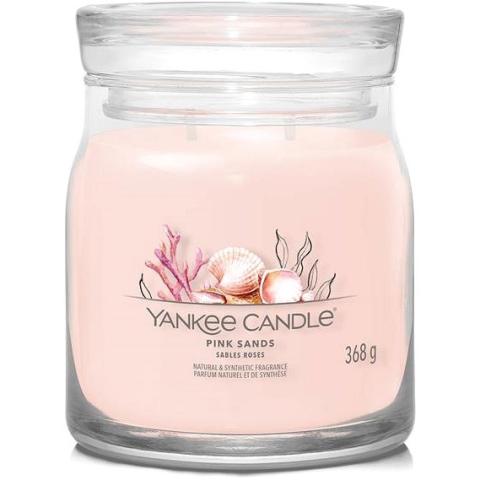 Gyertya - illatos, virágos illat, 2 kanóccal, üvegedény, kerek alakú, anyaga paraffin, rózsaszín kivitel, égési idő 50 óra A Yankee Candle Pink Sands gyertya egy egzotikus szigetre repít el, ahol a virágok, az édes dinnye és a citrusfélék friss illata keveredik. Ez az illatkompozíció a könnyű virágos jegyek és a friss gyü