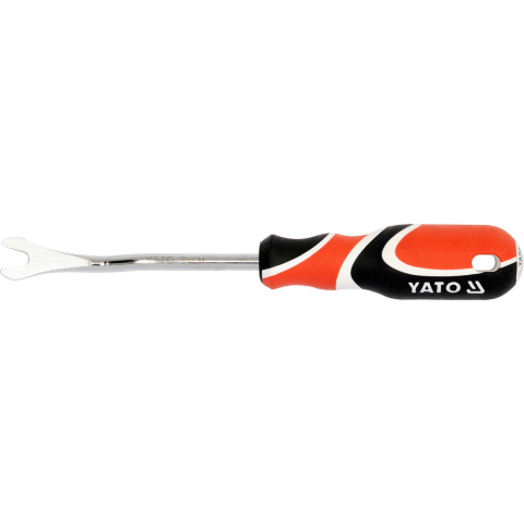 Kiváló minőségű SVCM erős chromozott acélból készítve Kényelmes ergonómikus markolattal kialakítva a hosszabb munkafolyamat érdekében Közkedvelt kárpit leszedő szerszám a nehezen hozzáférhető helyeken használható a hajlított vége segítségével Tulajdonságo