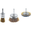 Csiszolókefe fúrógépgépbe - tárcsa, csésze és ecset, alkalmas rozsdaeltávolításhoz, alkalmas fém csiszolására, anyaga sárgaréz, hullámos drót, max. 7500 ford/perc, rögzítés módja szár, kefe átmérője 20 mm és 50 mm, szár átmérője 6 mm Szereld fel műhelyét pontosan készített és megfizethető drótkefékkel. Ez a csomag 3, különböző átmérőjű (20, 50 és 50 mm) kefét tartalmaz. Sokféle alkalmazásra tervezték, és különféle méretű s