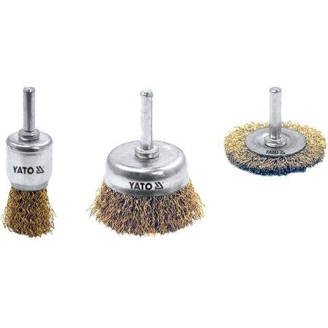 1 kép Yato drótkefe készlet fúrógépbe, 3 db, sárgaréz bevonattal