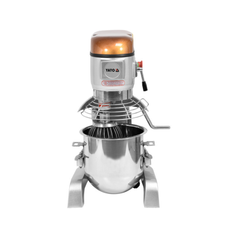 YATO YG-03025 típusú bolygóműves mixer 10 literes kapacitással. A mixer az alábbiak készítésére lett tervezve: - könnyű tészta dagasztása, - hab felverése, - töltelék keverése. 500 W-os motor hajtja, amely 220~240 V / 50 Hz feszültségről működik, foga