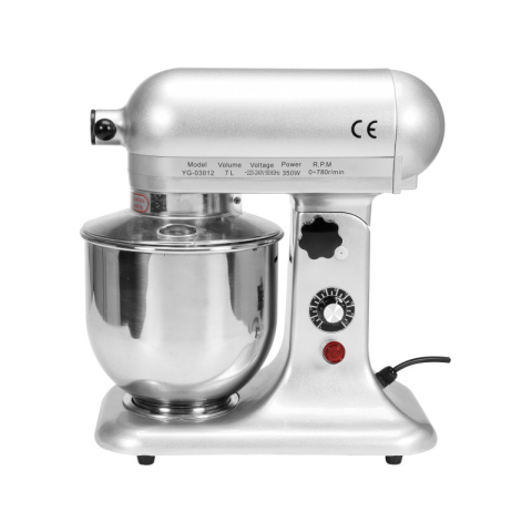 Egy YATO YG-03012 bolygómixer 7 literes kapacitással. A mixer a következőkre van tervezve: - könnyű tészta készítése, - hab felverése, - töltelék keverése. Fokozatmentes sebességszabályozással rendelkezik 0-780 fordulat/perc tartományban, így szabadon
