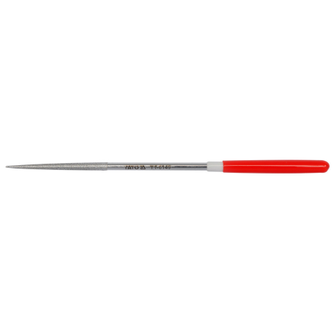 Anyag: szénacél #70 Alkalmazás: fém Felület kidolgozása: króm Fogantyú anyag: PVC Méret: 4x160 mm Szemcsefinomság: G150 Profil: kör Munkahossz: 50 mm