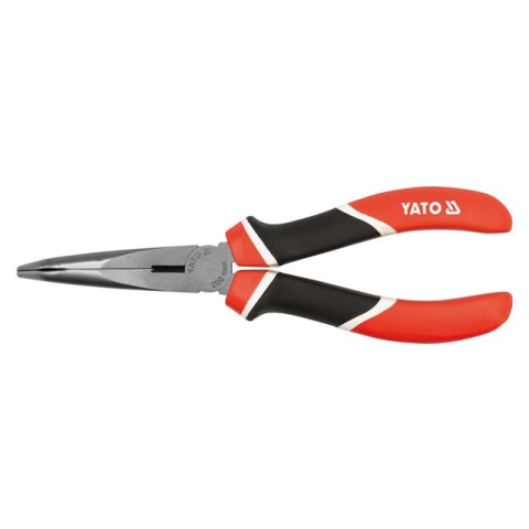 Hosszú, hajlított csipesz 160 mm hosszal a YATO-tól. A fogantyúk kényelmes, háromkomponensű műanyag párnákkal borítva.