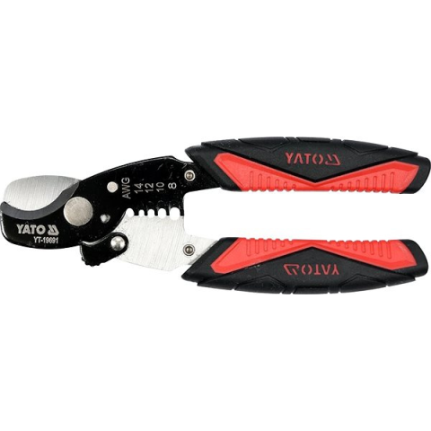 Csípőfogó - egyenes lapos pofák, vágóél olló formával, oldalsó vágóél, vágandó anyag max. átmérője 3,2 mm, rugós, csúszásgátlós markolat, hossza 170 mm, tömege 0,19 kg YATO kábelvágó, 170mm csípőfogó - jelentős paraméterek Ez az előnyös YATO csípőfogó hasznos társ a drótok és más anyagok manipulálásában Az egyenes élek precíz és tiszta vágásokat nyújtanak Lapos kial