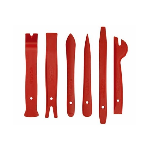 Az autó belső terének szétszedésére alkalmazható feszítő szett, mely 6db feszítőt tartalmaz. Használatával nem karcolja a festett felületet és megőrzi a kárpit épségét. Használható oldalkárpit illetve üléskárpit eltávolítására is. Kifejezetten erős, de mégis rugalmas anyagból készült.