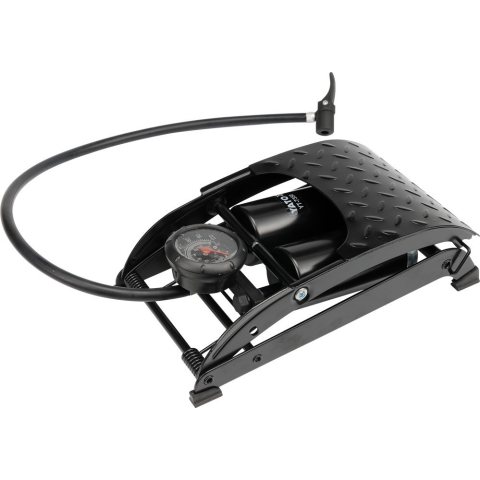 Dupladugattyús lábpumpa masszív konstrukcióval, préselt, lakkozott acéllemezből, 3 mm vastag. Nyomásmérő 7 bar értékig. A készlet tartalma: - dupladugattyús lábpumpa - adapterek - 2 db (matrac, labda, stb. felfújásához)