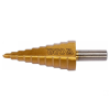 YATO Lépcsős fúró 4-22 mm 10 lépcsős HSS titán-nitrid • anyag: acél HSS 4241, titán-nitrid bevonattal • befogás: hengeres • hossz: 75 mm • max fúrási mélység: 4 mm / lépcső • 10 lépcső • méretek: 4, 6, 8, 10, 12, 14, 16, 18, 20, 22 mm