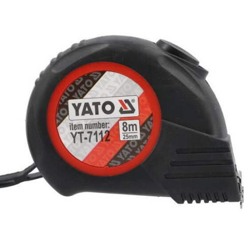 Professzionális mérőszalag 8 méter hosszúságban. ABS műanyag tekercselő rendszer, csúszásgátlós gumi burkolat. A szalag szélessége 25 mm rugalmas acéllemezből, sárga színben, milliméteres pontossággal. Nylon burkolattal védett felület ami