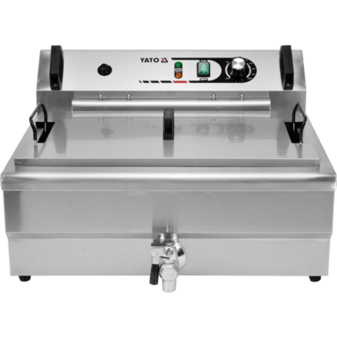 Csappal ellátott, 23 literes kapacitású YATO márkájú YG-04640 olajsütő. A YATO olajsütő különösen alkalmas mélyhűtésre: - hal, - fánk, - hús, - sütemények, - zöldségek. Az olajsütő tartályának maximális feltöltési kapacitása 30 liter. Az olaj minimáli
