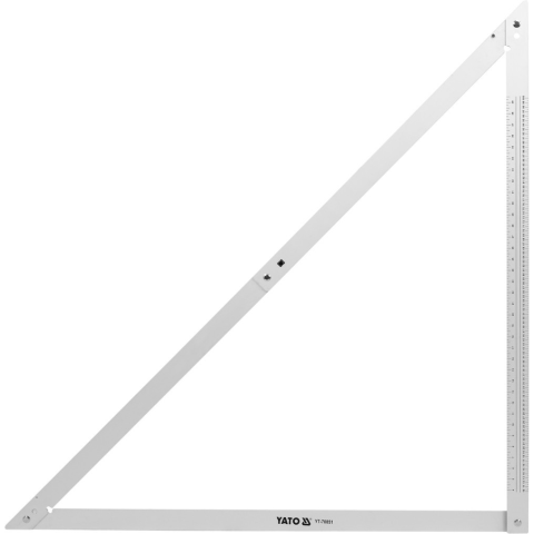 Alumínium összecsukható derékszög. Az egyik oldala centiméter és hüvelyk méretű. Alkalmazás: Építőipari, burkoló, ács, tetőfedő, csempéző stb. mérési munkákhoz. Méret [mm] 1720 x 1220 x 1220 Anyag alumínium