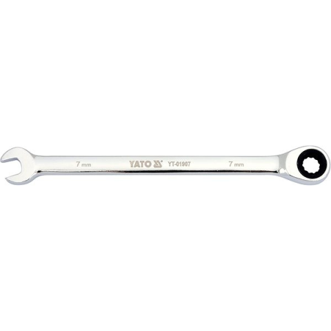 Csillag villás kulcs - duplex, racsni, 7 mm kulcsméret, anyaga króm-vanádium acél A minőségi munkához nemcsak képzett kézre van szükség, hanem minőségi eszközökre is. Bemutatjuk a Yato márkát, amely CrV acélból készül. Ez az alapanyag rendkívüli szilárdságáról ismert króm
