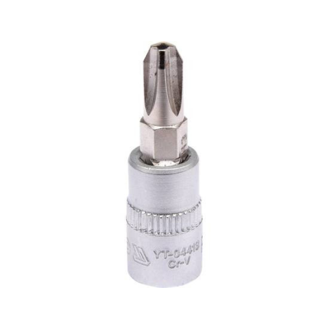 Termékleírás: - Szabvány: DIN 3120 - Hajtás: 1/4 - Méret: PH3 - Anyaga: CrV6150 - Hosszúság [mm]: 37 Professzionális PH3 bithegy 1/4 meghajtású, krómozott CrV6150 acél, AISI S2 acélból készült és nikkel bevonatú.
