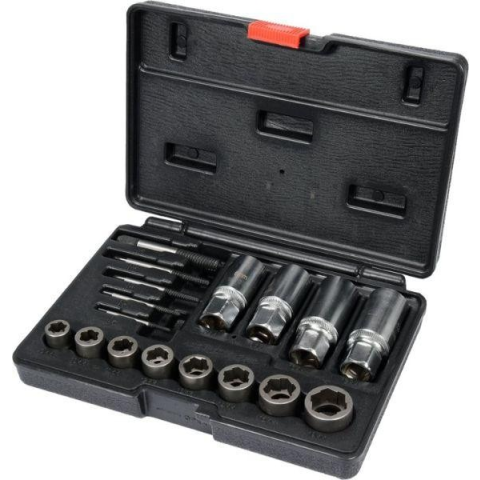 YATO Törtcsavarfej és törtcsavar kiszedő készlet 17 részes • befogás: 1/2 col, 3/8 col • anyag: CrMo 42 acél és CrV 50BV30 acél • csomagolás: műanyag doboz Készlet tartalma: • 4 db dugókulcs 1/2 col: 6, 8, 10, 12 mm • 8 db dugókulcs 3/8 col: 9, 10, 11,