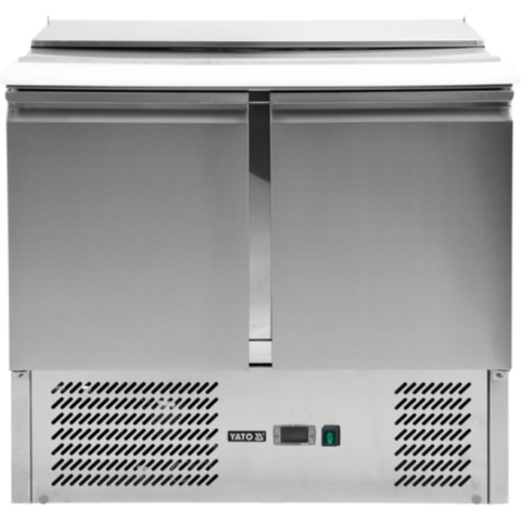 Saláta 2 ajtós hűtött asztal fedéllel, YATO YG-05262 márkájú. A saláta hűtött asztal méretei 900x700x876 mm, kamra kapacitása 240L. Az élelmiszerek +2~+80C hőmérséklet tartományban történő tárolására lett tervezve. Ideálisan alkalmas mindenféle vendég