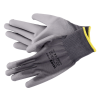 Méret: 9 Védelmi kategória: II Szabvány: EN 388:2016 Anyag: poliészter Szúrásállóság: 1 Vágásállóság: x Pengeállóság: 1 Szakítási ellenállás: 3 Kopásállóság: 3 Párok: 1 Védőmunkakesztyű szürke poliészterből, fogórészükön szürke poliuretán bevonattal.