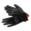 Védelmi kategória: II Szabvány: EN 388:2016 Anyag: nejlon, PU Átszúrás elleni védelem: 1 Vágás elleni védelem: x Vágás elleni védelem pengével: 1 Szakítási ellenállás: 3 Dörzsölési ellenállás: 4 Párok: 1 Védőmunkakesztyűk fekete nejlonból, fogórészükö