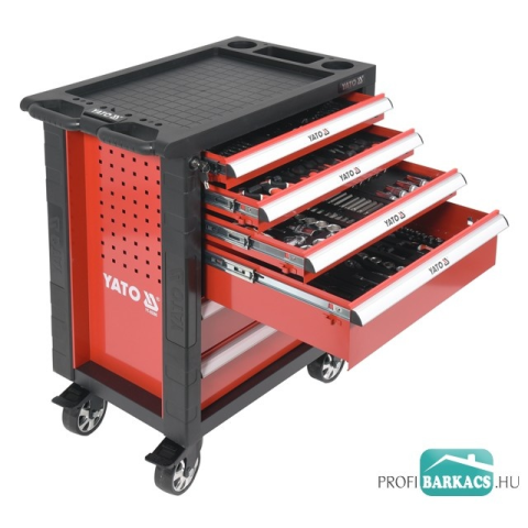 YATO YT-55300 szerszámkocsi 6 fiókos, 177 részes készlettel A YATO YT-55300 szerszámkocsi egy masszív és megbízható műhelyszekrény, amely kifejezetten autószerelő műhelyek és szervizállomások számára lett kialakítva. A kocsi 6 fiókkal rendelkezik, melyek