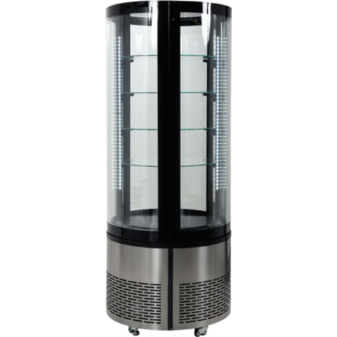 YATO szabadon álló kerek hűtővitrin 400L űrtartalommal fekete színben. A YATO márkájú hűtővitrin torták,, sütemények, vagy különféle italok bemutatására szolgál. A modern dizájn és a kiváló alapanyagok minősége ötvözve teszi, hogy a YATO hűtött vitrin