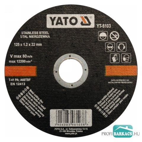 Yato Vágókorong fémre 125x1,2x22 INOX csiszolókorong és vágókorong 1 kép