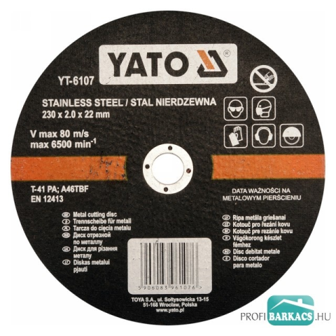 Yato Vágókorong fémre 230x2x22 INOX csiszolókorong és vágókorong 1 kép