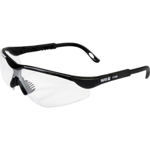 YT-7365 védőszemüveg, amelyet a szem védelmére terveztek kézi és mechanikai munkák, pl. csiszolás, fúrás, vésés stb. során. optikai osztály: 1 - a legmagasabb látásminőség, folyamatos munkához ajánlott UV szűrő: jelölés 2-1.2 - professzionális haszná