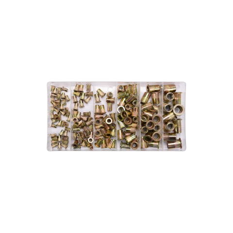 YATO Acél szegecsanya készlet 150 részes • M3: 40 db • M4: 35 db • M5: 25 db • M6: 25 db • M8: 15 db • M10: 10 db