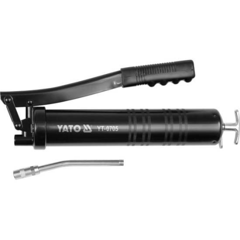 A Yato márkájú karos zsírzó a mechanikus elemek, például tengelyek, csapok, csapágyak nagynyomású kenésére szolgáló eszköz. 400 ml- es acélhengerből készül, amelyet kézi dugattyú működtet. A dugattyú csúcsminőségű gumi tömítéssel rendelkezik, amely elle