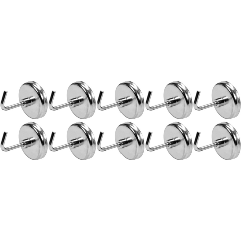 Acéllemezből készült 10 db-os kampós készlet, kis szerszámok, kiegészítők stb. falra vagy szerszámszekrényre történő felakasztására. Lehetővé teszik, hogy bárhová rögzítse őket, gyors hozzáférést biztosítva a munkahelyen használt felszerelésekhez. - elle