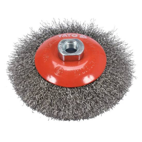 Forgókefe fémfelületek, festékbevonatok tisztítására és polírozására, valamint rozsda eltávolítására és szerszámok tisztítására. kiváló minőségű anyagokból készült hatékony és tartós acélgyűrűkkel megerősített huzalrögzítés fém és rozsdamentes acél