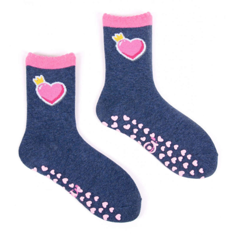 Yo! ABS csúszásgátlós zokni 23/26 - sötétkék/pink szív