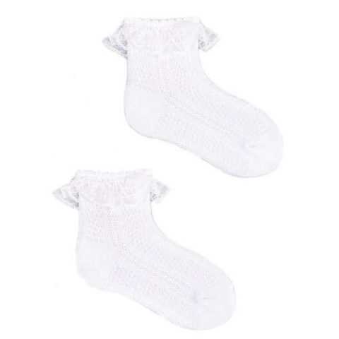 Yo! Baby pamut zokni 0-3 hó - fehér mintás,csipkés gyerek zokni 1 kép