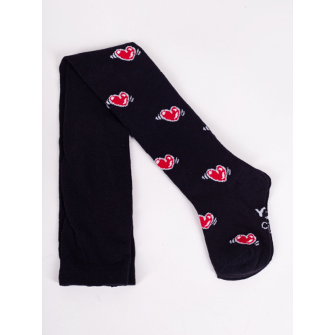 1 kép Yo Club! Pamut Harisnyanadrág csúszásgátló talppal - Fekete/Piros Szíves 104/110
