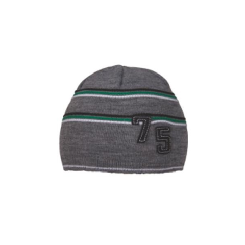 Gyerek sapka. A sapka egyszínű csíkokkal és 75-ös számmal. Anyaga: 100% akril. Mérete: 52-54. Idősebb gyerekek számára is megfelelő.
