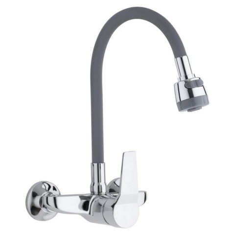 1 kép YOKA flexibilis fali mosogató / mosdó csaptelep zuhanyfejjel - szürke / króm