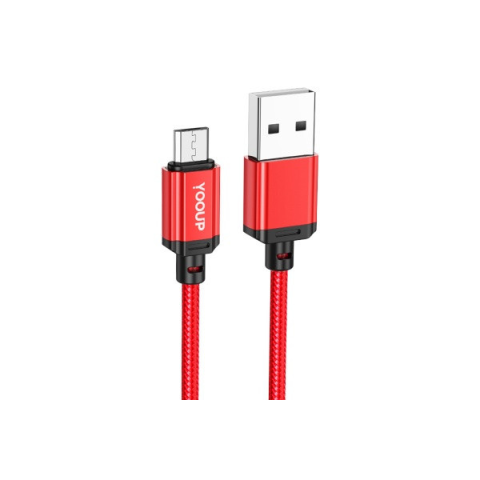 YOOUP L07 MICRO USB KÁBEL 2.4A 1 MÉTER PIROS kábel és adapter 1 kép