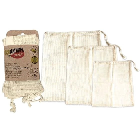Élelmiszeres zsák - mosható kivitel, húzózsinórral ellátva, anyaga pamut, méretei 30 × 35 cm (ma × szé), 3 darab a csomagban A YORK zsákok praktikus kiegészítői az élelmiszereknek. Lehetővé teszi a kenyér, gyümölcsök, zöldségek és ömlesztett alapanyagok tárolását. Kiváló minőségű pamutból készültek, és a csomag 3 különböző