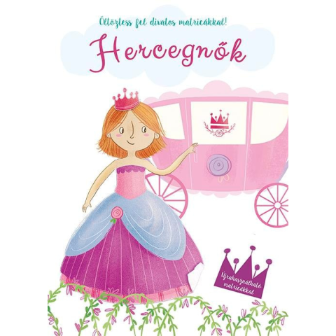 Öltöztesd fel hercegnődet tetőtől talpig, vagyis koronától cipellőig!A nyolc oldalnyi, újrahasználható matricákat tartalmazó gardróbmelléklet segítségével könnyedén keverheted a mesés ruhákat, kombinálhatod a hercegnői kiegészítőket, pont úgy, ahogy a kedved diktálja.
