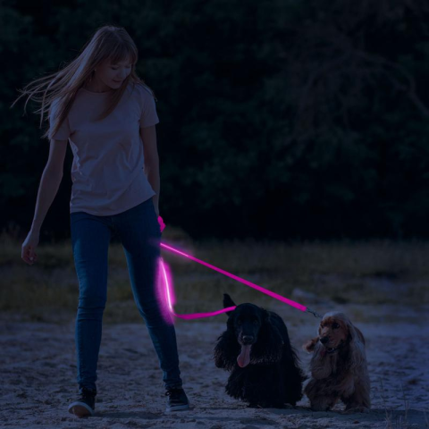 Yummie LED-es póráz - akkumulátoros - 120 x 2,5 cm - rózsaszín nyakörv, póráz, hám kutyáknak 1 kép